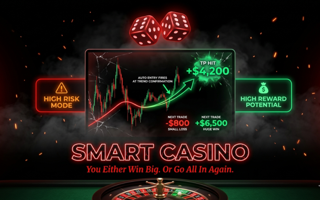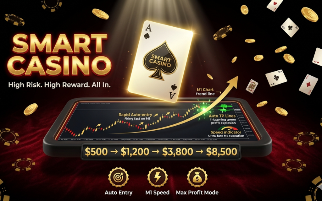 Smart Casino là Expert Advisor được thiết kế dành riêng cho những trader ưa mạo hiểm và săn lợi nhuận lớn. Hoạt động trên khung thời gian M1 — nhanh, mạnh và không khoan nhượng — EA tự động bắt xu hướng, vào lệnh tức thì và chốt lời tự động mà không cần bất kỳ thao tác thủ công nào. Smart Casino không dành cho người yếu tim: rủi ro cao, nhưng phần thưởng xứng đáng cho những ai dám chơi lớn. Một ván bài thị trường — hoặc bạn thắng đậm, hoặc tái cơ cấu và chơi tiếp. Đây không chỉ là một robot giao dịch — đây là sòng bạc tài chính trong tay bạn.